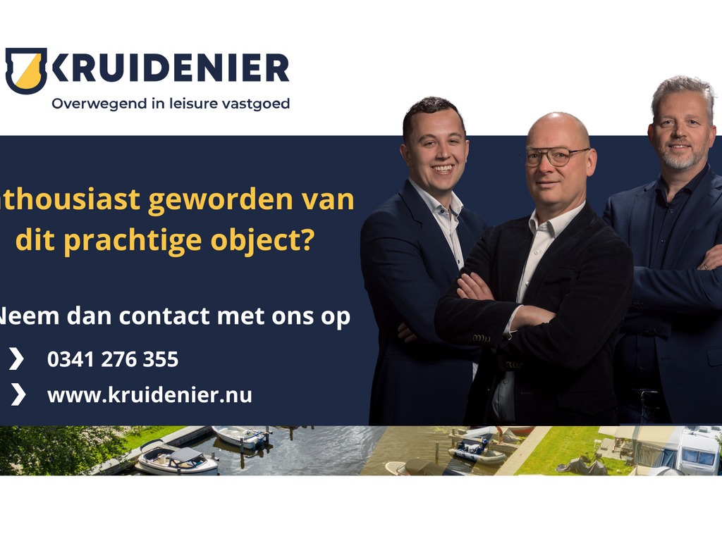 Deze informatie is geheel vrijblijvend, uitsluitend bestemd voor geadresseerde en niet bedoeld als een aanbod. Ten aanzien van de juistheid kan door Kruidenier Recreatie Bedrijfsmakelaardij B.V. doch door Den Otter van Vliet B.V. geen aansprakelijkheid worden aanvaard, noch kan aan de vermelde informatie enig recht worden ontleend. Alle opgegeven aantallen, maten en oppervlakten zijn indicatief.