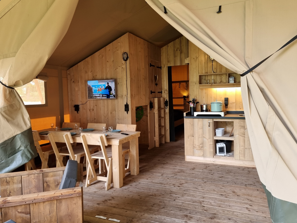 Het betreft een chalet met één bouwlaag en een woonoppervlakte van circa 70 m². De bedrijfswoning bestaat uit een entree, een woonkamer met open keuken, een slaapkamer, twee slaapkamers met een eigen badkamer en een centrale badkamer voorzien van toilet, bad en wastafel. Rondom de bedrijfswoning bevindt zich een ruime privétuin. Deze tuin is door middel van beplanting afgescheiden van het campingterrein, hetgeen zorgt voor extra privacy. Tevens is een schuurtje met overkapping aanwezig.