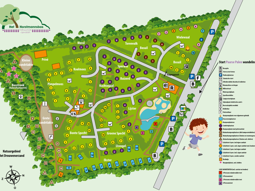 Deze gastvrije familiecamping richt zich op zowel jong als oud en onderscheidt zich door haar unieke, bosrijke karakter in combinatie met moderne voorzieningen op eigen terrein. De camping verkeert in uitstekende staat van onderhoud. In de afgelopen jaren is substantieel geïnvesteerd in zowel het terrein als de faciliteiten. In de afgelopen jaren zijn de speelvoorzieningen vernieuwd en uitgebreid. Zo is onder meer in 2022 een speelvijver gerealiseerd, voorzien van twee glijbanen en een zes meter hoge watertoren, evenals diverse moderne speeltoestellen.