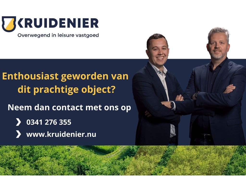 Deze informatie is geheel vrijblijvend, uitsluitend bestemd voor geadresseerde en niet bedoeld als een aanbod. Ten aanzien van de juistheid kan door Kruidenier Recreatie Bedrijfsmakelaardij B.V. geen aansprakelijkheid worden aanvaard, noch kan aan de vermelde informatie enig recht worden ontleend. Alle opgegeven aantallen, maten en oppervlakten zijn indicatief.